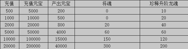 规则:计算开服第一周内单笔充值元宝(可获得对应累计充值档位奖励)