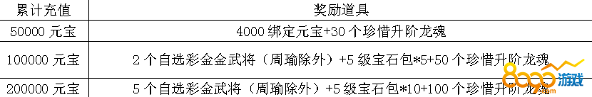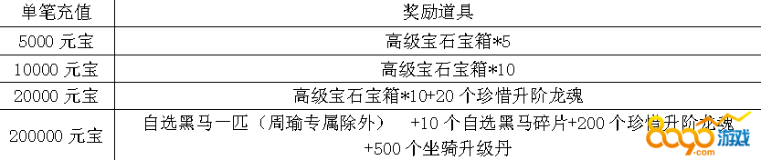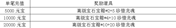 开服第一周,单笔充值充返奖励如下,每档只能达成一次。