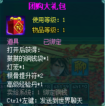 3, 每件商品前20名参与团购的玩家将额外获得系统奖励团购大礼包一份。