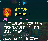 活动期间,商城将出售根骨大宝箱,各大副本boss,以及活动boss将有几率掉落汤圆、灯笼、灯火等道具。