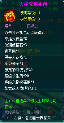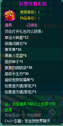 2.充值礼包中的法宝道具均为70级以上玩家才能获得。