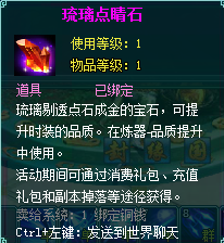 让您的时装更加炫耀亮丽,焕发琉璃光芒;提升您时装的品质,让加成的属性更加强大。只要您通过消费、充值获得礼包,即可开出琉璃点睛石来提升您的时装品质。同时您还可以通过黄金梧桐树、击杀副本boss、击杀活动boss等途径获得此道具。