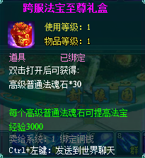 3, 消费礼盒中的法宝道具等级70级以上玩家才可获得。