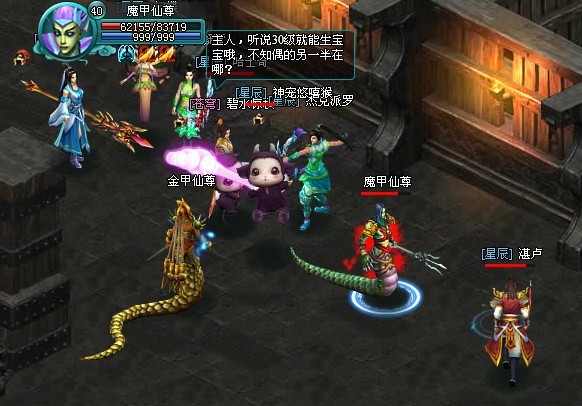 继续前进,二号BOSS看起来是一对情侣……(基友?)一个物免一个魔免,要是队伍里面没有法尊和天机,那么只能把幻蝶火狐小春子什么的法术宠物拉出来当打手了。