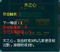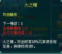 五行技能会根据人物主命脉不同,拥有不同的技能,金之魂(连击),木之心(沉默),水之魄(迟钝),火之精(定身),土之灵(眩晕)。