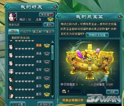 然后加好友40级以上的无限加,记住要活人,嘻嘻聚宝盆。