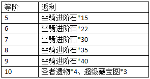 活动规则:活动期间,将坐骑进阶至指定阶数,可获得额外系统赠礼。