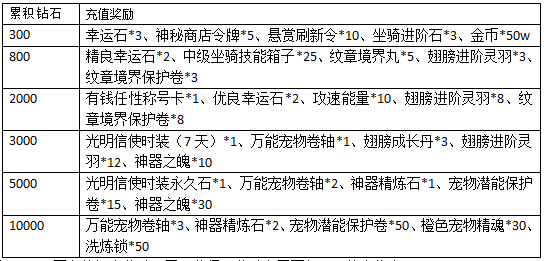 活动期间,累积充值达到指定额度,还可以获得以下超值丰厚的奖励哦!