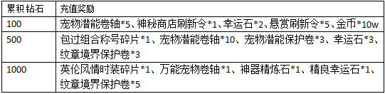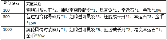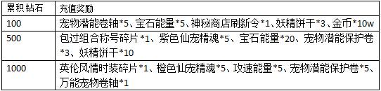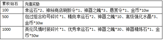 活动规则:活动期间,每天累积充值达到指定额度,还可以获得以下超值丰厚的奖励哦!