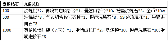 温馨提示:不同充值额度奖励可累积获得,奖励在界面领取,均为绑定。