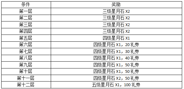 活动规则:活动期间,首次通过光明神塔任意层数均可获得奖励!