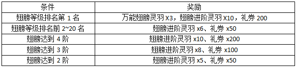 活动期间,翅膀进阶满足一定条件可获得对应奖励。