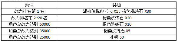 活动期间,玩家角色总战力满足一定条件可获得对应奖励。