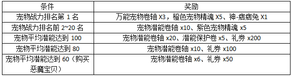 活动期间,宠物战力满足一定条件可获得对应奖励。