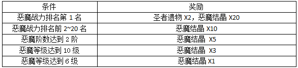 活动期间,恶魔战力满足一定条件可获得对应奖励。