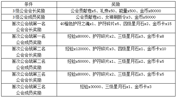 开服前七天,公会玩法满足一定条件,所属成员均可获得对应奖励