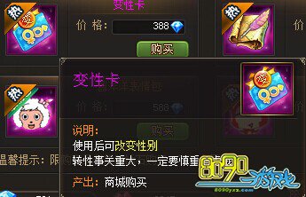 使用后玩家可以转换性别,不过使用变性卡之前一定要谨慎哦。