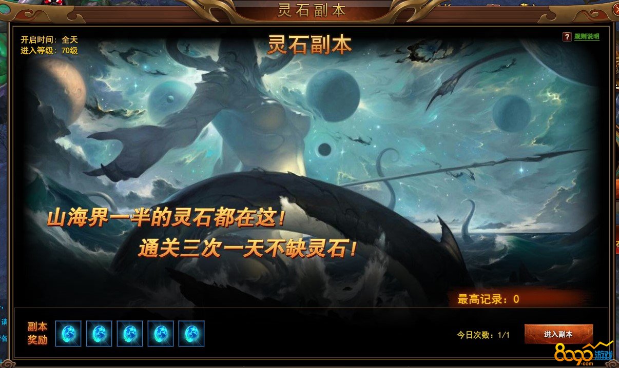 灵石副本每天都有一次进入机会,将会获得海量灵石,当然如果你开通会员的话,每天的进入次数将增加一次。