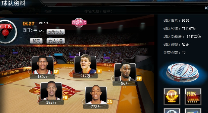 范特西篮球经理天梯赛需要玩家到达三十级才能开始参加,玩家在比赛中可以获得积分,积分可以兑换球员。例如50w积分可以换取永久韦德、米勒或威廉姆斯其中一个。