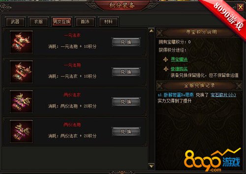 在8090新焚天之怒中,有部分衣服是可以实现性别转换的,当然也只有一部分的衣服是可以进行性别转换的,而转换的方法也十分的简单,打开积分装备页面,消耗相应的宝藏积分就可以进行衣服的性别转换了哦!