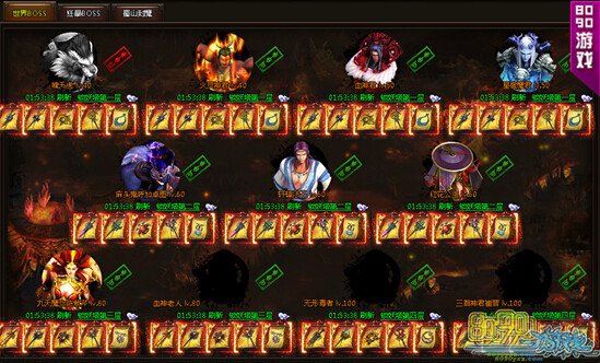 搜索"8090网页游戏"BOSS无疑是让众所玩家又爱又恨的生物,原因很简单,它们往往携带众多宝物,但是每一个都实力强大,胜了带走宝物自然欢喜,败了命丧刀下也就怨恨了。今天我们就一起来看看8090封天战神中的各路BOSS吧,它们都能给予哪些奖励呢?