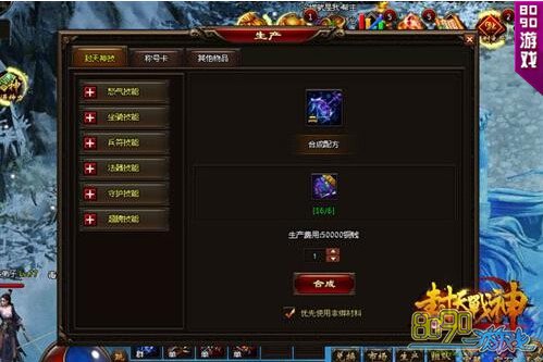 8090封天战神独创“半生产制”模式,推出生产系统,真正实现“全面免费”。玩家在游戏中杀怪,就能获取一定的材料。前往生产系统,进行合成,就能自己打造全新技能,各式霸气称号,以及珍贵材料。