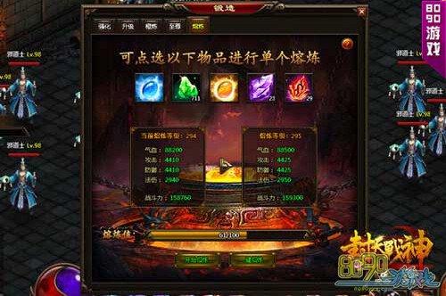 搜索"8090网页游戏"在8090封天战神中,我们挂机的时候可以获得很多材料,对于那些我们并不需要的材料要如何处理呢?放背包又实在是占空间,这里我们就要说到熔炼系统了,它可以将游戏内各个重要的材料作为熔炼材料,用以提升熔炼等级,获取额外的属性加成,为玩家带来全新战力。