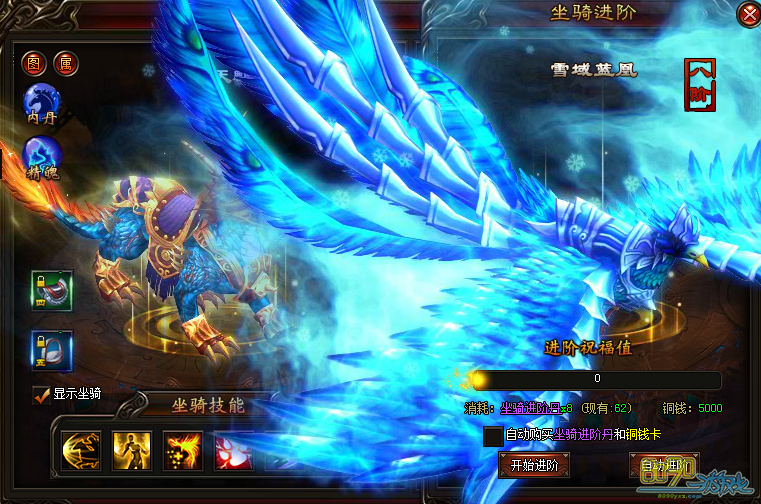 8阶坐骑升级至9级:2250-2407左右,建议准备2430个左右