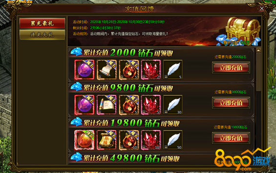 活动说明:活动期间,累计充值指定钻石,可领取海量奖励!