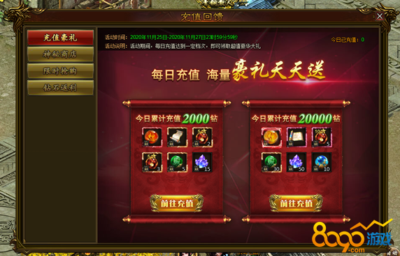 活动说明:活动期间,每日充值达到一定档次,即可领取豪华大礼