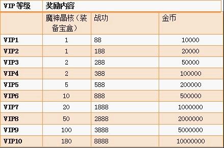¡¡¡¡Ã¿ÉýÒ»¼¶VIP¼´¿É»ñµÃÒ»¸öVIPÀñ°ü£¬´ò¿ªVIPÀñ°ü¼´¿É»ñµÃ½±ÀøÄÚÈÝ¡£
