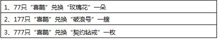 -活动期间野外战斗会随机掉落"喜鹊"达到一定数量可以兑换相应奖励