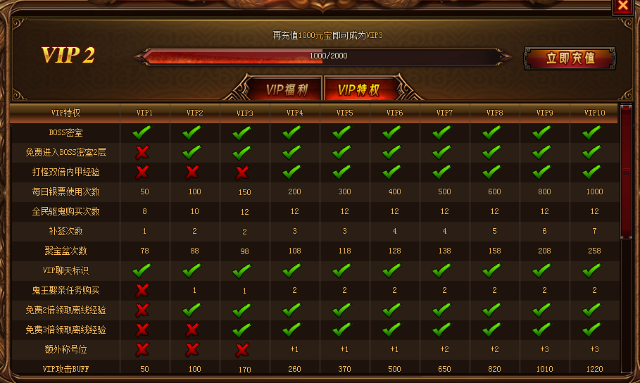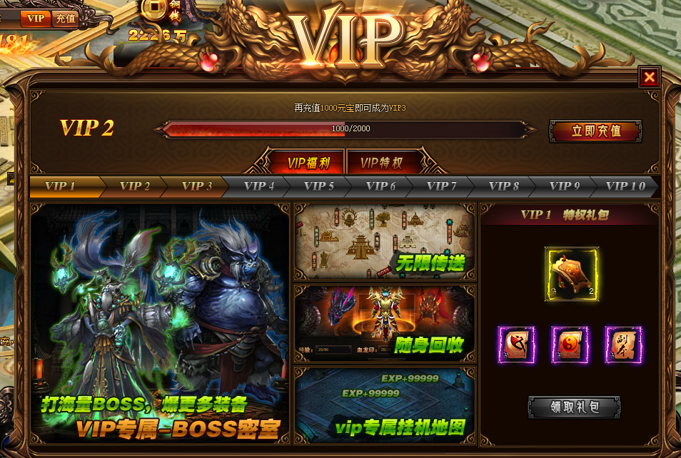 开通VIP后不仅可以领取奖励丰厚的礼包,还可以获得经验加成和更多的特权。