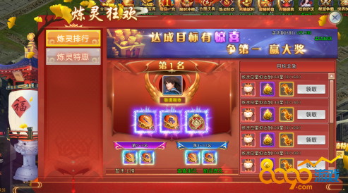 炼灵狂欢:活动期间,炼灵装备星级,达到对应的奖励总星级可领取超值返利,争夺排行还可领取唯一炼灵勋章
