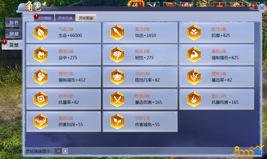 橙色和红色灵纹可以通过灵纹兑换获得。