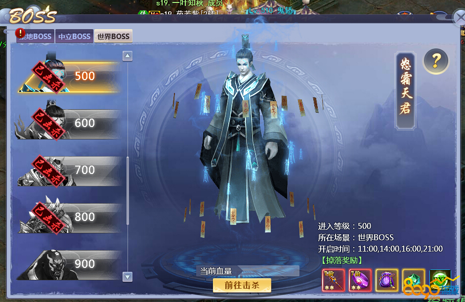 ●满足等级要求才能击杀对应的世界BOSS