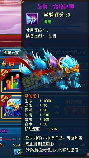 三、全新霸气坐骑—霜焰冰狮!古剑绝版坐骑,冰霜雪地的一头霸气狮子,大侠骑上去是什么感觉呢?!新服前三天均可抢购哦!提升血脉,极大增加人物战斗力!