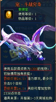 二、斗破穷奇:1300满级高资质橙色宝宝,伤害最高!附带顶级技能!打战场最强宠物!