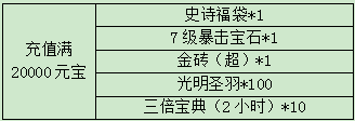 1. 当天充值满20000元宝可领取以下奖励