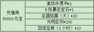 2. 当天充值满50000元宝可领取以下奖励
