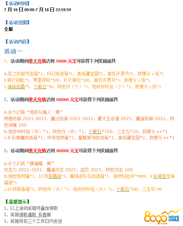 • 攻铩7月16-18日日常活动 单日充值赢超多道具