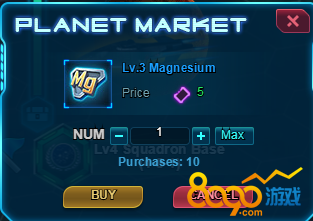 最后再说个小彩蛋,当飞船停留在己方占领的SQUADRON BASE上,能使用PLANET MARKET功能购买额外的贸易物资,当然这里购买是没有折扣价的,不过却可以使用金属、水晶和二锂来兑换,如果资源很多的话不妨考虑多留意SQUADRON BASE上刷新的物资(每隔一段时间会换,如果不满意可以下次再来)。如下图: