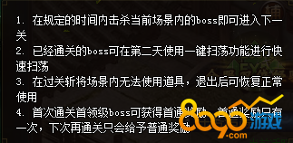 2. 已经通关的boss可在第二天使用一件扫荡功能进行快速扫荡