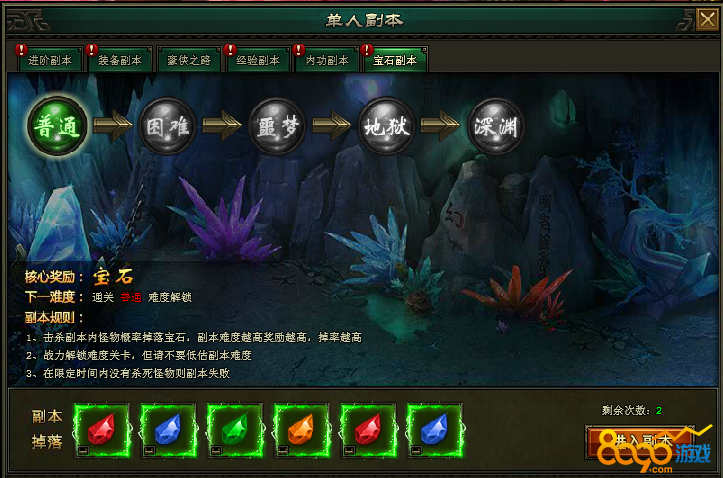 5、【内功副本】每天都可以为玩家提供可观的宝石,助玩家更容易得提高宝石等级。