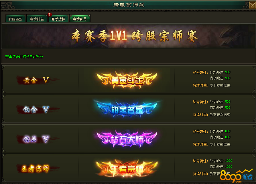 黄金段位以上的玩家将获得赛季称号,获得攻击属性加成!