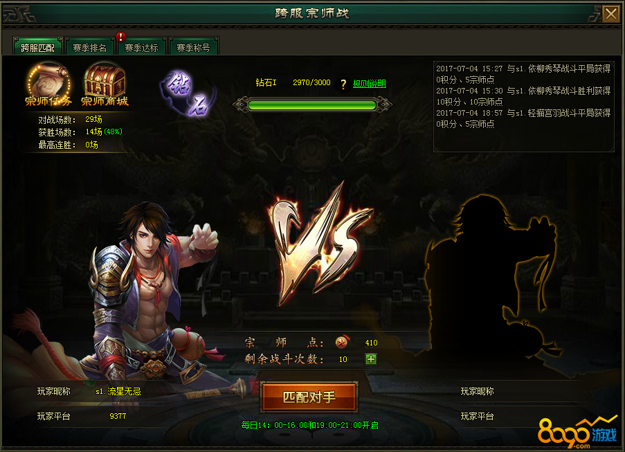 1、跨服1V1宗师赛优先匹配同段位的玩家