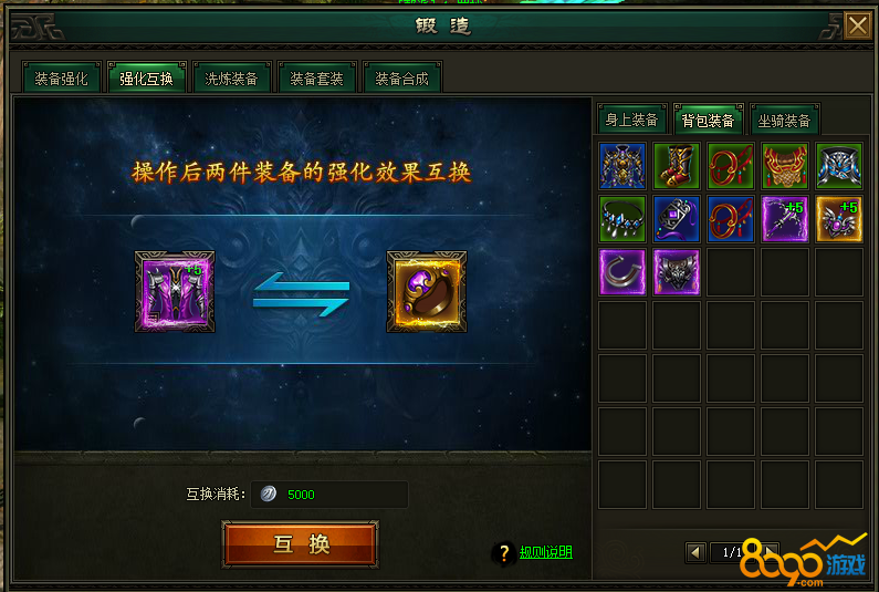 在获得更好的装备时,可以把原有的高强化等级装备的强化等级转移到新的装备。