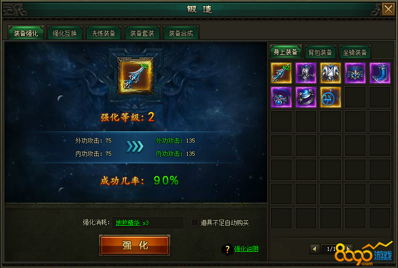 搜索"8090网页游戏"在8090寒刀中称霸武林之路,异常艰辛,当然了,玩家如果拥有强力的极品装备,则会事半功倍,那么今天就给大家介绍一下寒刀强化装备的方法和强化互换。