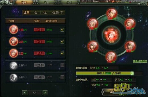 别把伤害不当伤害,积少能成多。往日玩家获得的将魂都会在将魂界面显示,而重复或多余的将魂可别认为没用了,《魂斗三国》将魂融合让你变废为宝。选定主将魂,选择六个将魂添加到被融合的孔洞,融合过后,主将魂会吸取经验增加属性哦!