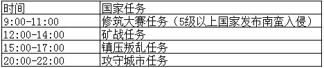 每天国家会发布国家任务提供本国所有玩家参与,国家任务需本国所有玩家齐心完成,完成后可在国家任务中获得相应报酬。